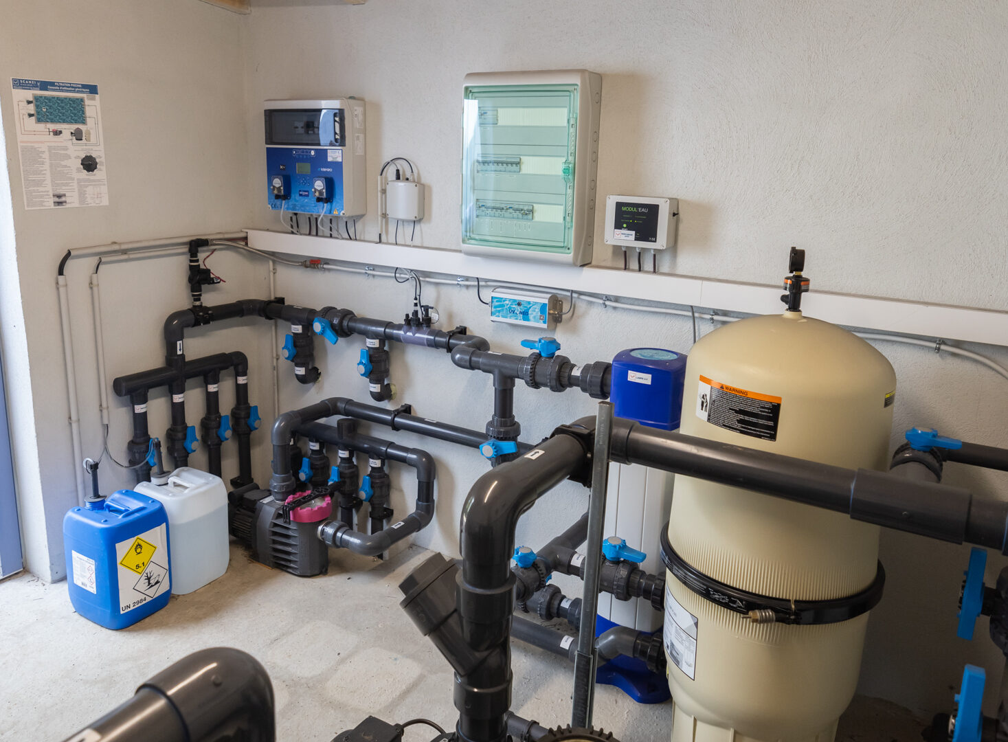 De nombreux équipements sont nécessaires pour le fonctionnement optimal d’un bassin aux telles dimensions. Tout est automatisé, l’utilisateur n’a plus qu’à se baigner l’esprit tranquille.