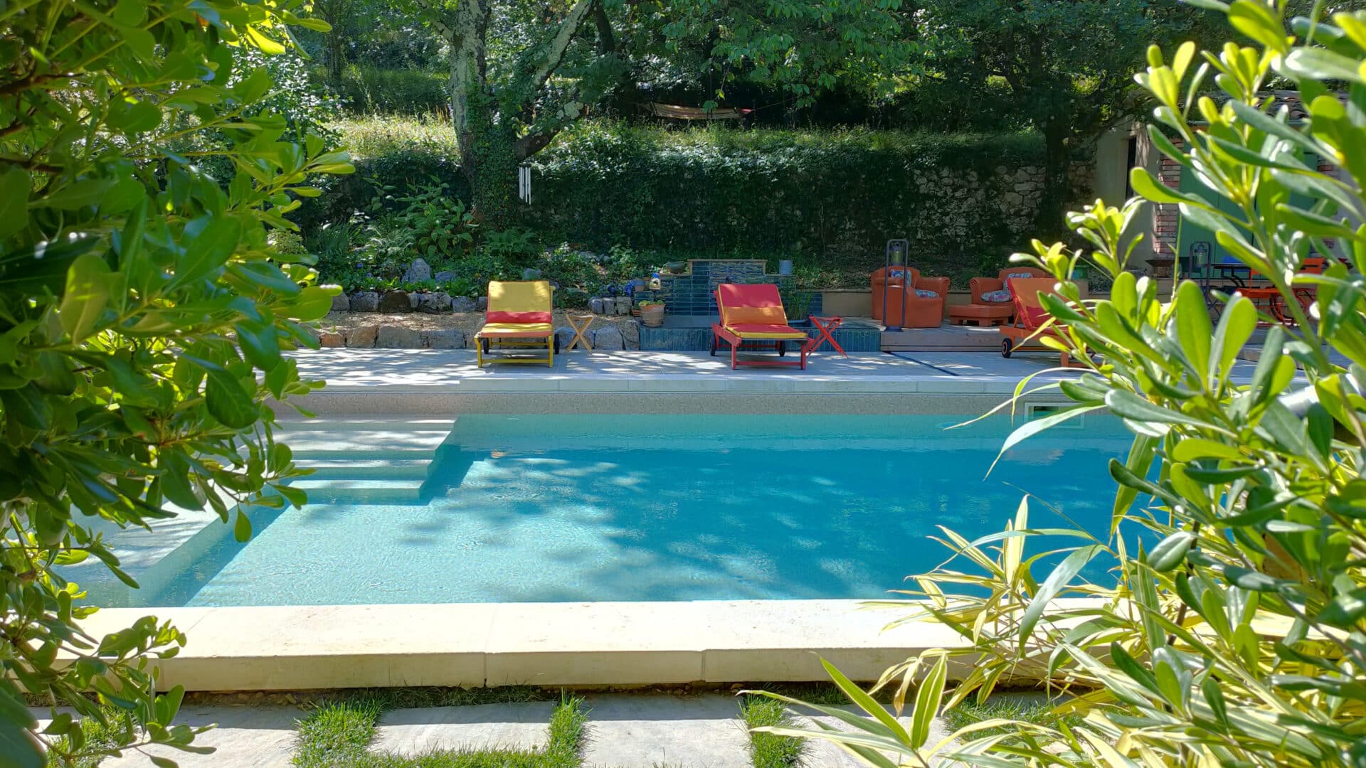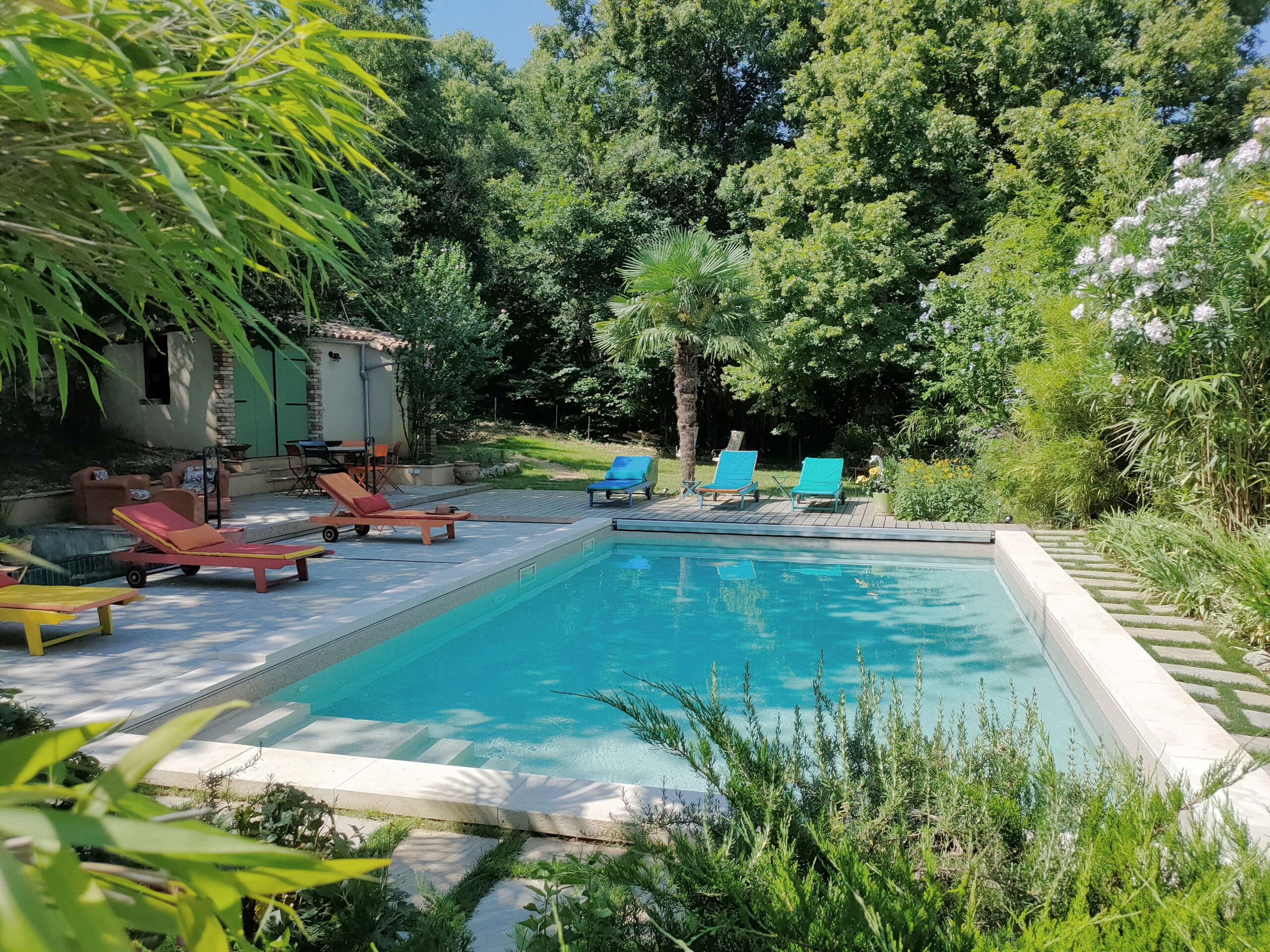 Des couleurs flamboyantes… Une végétation luxuriante… Un soleil de plomb… Cette piscine est une invitation au voyage. Et pourtant, nous sommes dans le Gard! Un bassin aux belles dimensions dans lequel nager et jouer, un revêtement d’étanchéité effet 3D grains de sable pour une eau tropicale, une grande banquette immergée pour profiter des beaux jours. Sécurité du bassin grâce à la couverture automatique, toile coloris vert amande.